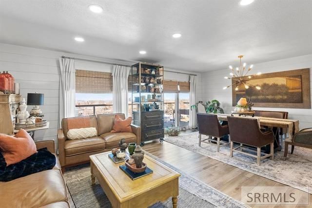 Custom remodeled home with standout interior design and quality finishes throughout. Exterior features include trestle wood shutters, accents, pergola, custom window awnings, new concrete, and professionally designed landscaping. Interior showcases shiplap details, updated lighting, and LVP flooring on the main level. All 2 1/2 Baths Remodeled with custom vanities, tile flooring, ample counter space, and a walk-in shower on the main floor. Kitchen offers generous cabinet and counter space, new KitchenAid appliances, gas range, brushed gold hardware, and large windows for natural light. Spacious primary bedroom with dual closets, built-in dressers, and added storage. Family and dining rooms feature floor-to-ceiling windows with views beyond American Falls Reservoir. New deck for outdoor enjoyment. Finished basement with walk-out door, gas fireplace, daylight windows, and large storage room. Heated, insulated 2-car garage with workspace and storage. Additional features include patio, membrane roof, vinyl windows, updated electrical and plumbing, new plumbing fixtures, RO system, new furnace and central A/C, solid brick construction, metal soffit and fascia with rain gutters, and storage shed. Move-in ready. Seller open to selling select furniture.